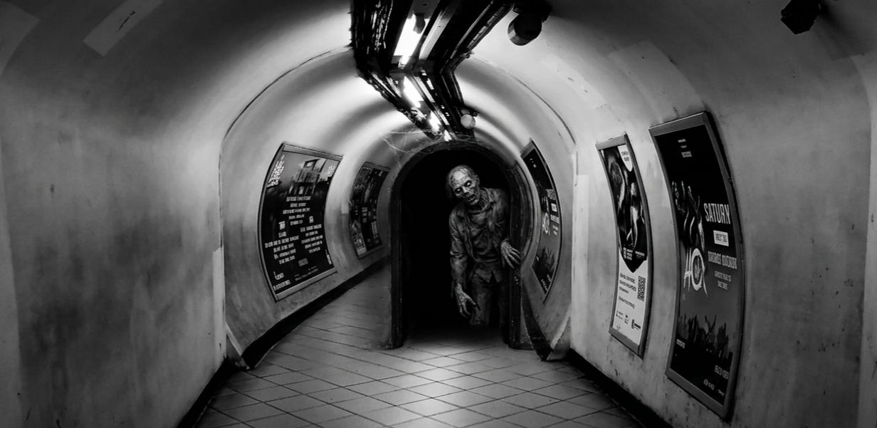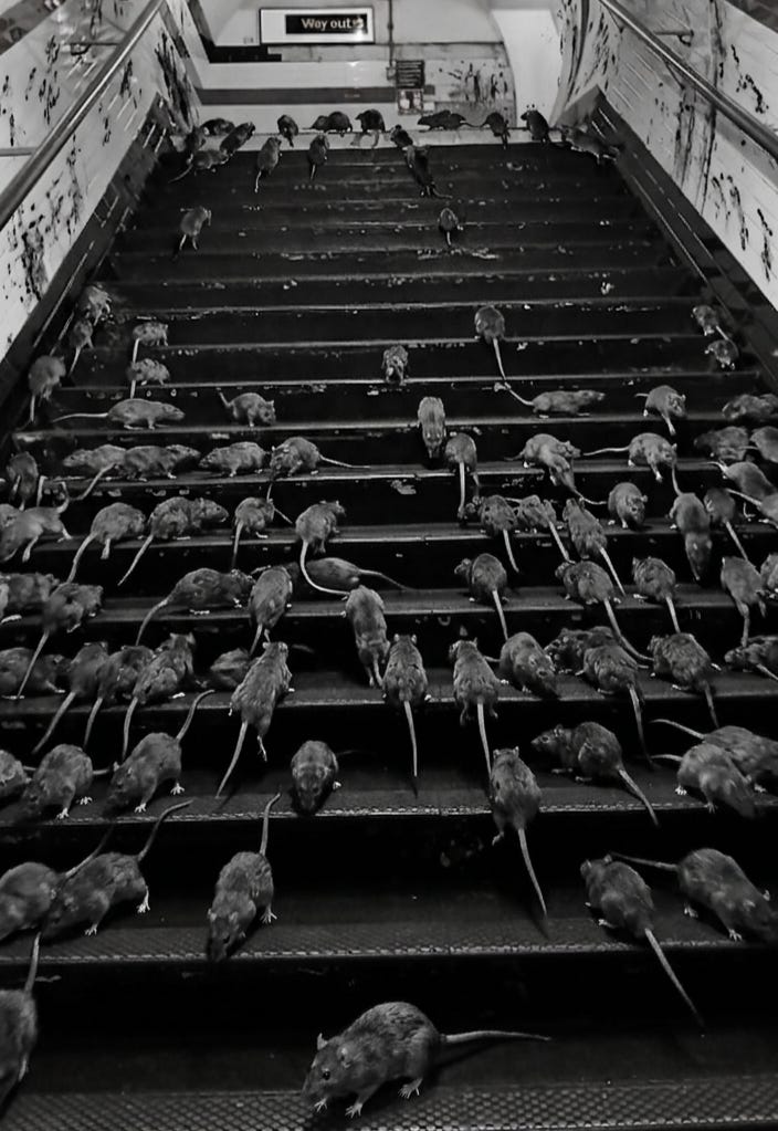 The 1970s saw a host of horror novels, particularly published by NEL (New English Press), focusing on the sub-genre of creature horror where nature turns against humanity. Top of the pile was James Herbert’s ‘The Rats’(1974) in which hordes of mutated, flesh devouring rats lay siege to London. An entire chapter is set in Holborn underground station. It starts with a commuter waiting on the platform. When he feels the wind gusting through the tunnel, a familiar sign that a train is approaching, he stands up only to find it is not a train but a seething pack of thousands of bloodthirsty rodents. The rats then attack passengers on the escalators and staff in ticket office before descending once more to slaughter everyone on board a train which has now come to a halt at the platform.